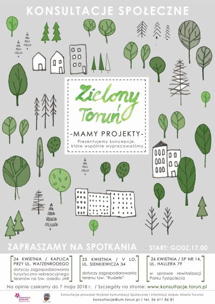 Szanowni Państwo,już dzisiaj tj. 25/04/2018  odbędą się konsultacje na temat zagospodarowania "Rudelki" - lasku znajdującego sie na pograniczu okręgu "Chełmińskie" oraz "Bydgoskie". Warto przyjść , zapoznać się z projektem, wyrazić swoją opinie. Teren ten jest idealnym miejscem na rekreację w lesie, w samym centrum miasta. Zachęcamy do udziału.Konsultacje organizowane są przez Urzad Miasta Torunia (Wydział Komunikacji Społecznej i Informacji). kiedy : 25/04/2018, g.17:00 gdzie: V LO przy ulicy Sienkiewicza wicej informacji: http://www.konsultacje.torun.pl/…/zielony-torun-mamy-projek…
