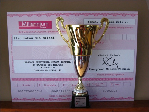 12 kwietnia 2018 roku została zakończona modernizacja placu zabaw przy Szkole Podstawowej Nr 34. Była ona możliwa dzięki udziałowi mieszkańców w 2016 roku w II edycji turnieju "Osiedla na start". Nasza 23-osobowa drużyna złożona z dzieci, młodzieży i dorosłych wywalczyła w tej imprezie III miejsce. Otrzymaliśmy puchar oraz w nagrodę modernizację wspomnianego placu zabaw.