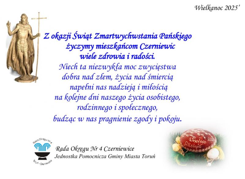 Z okazji Świąt Zmartwychwstania Pańskiego życzymy mieszkańcom Czerniewic wiele zdrowia i radości.