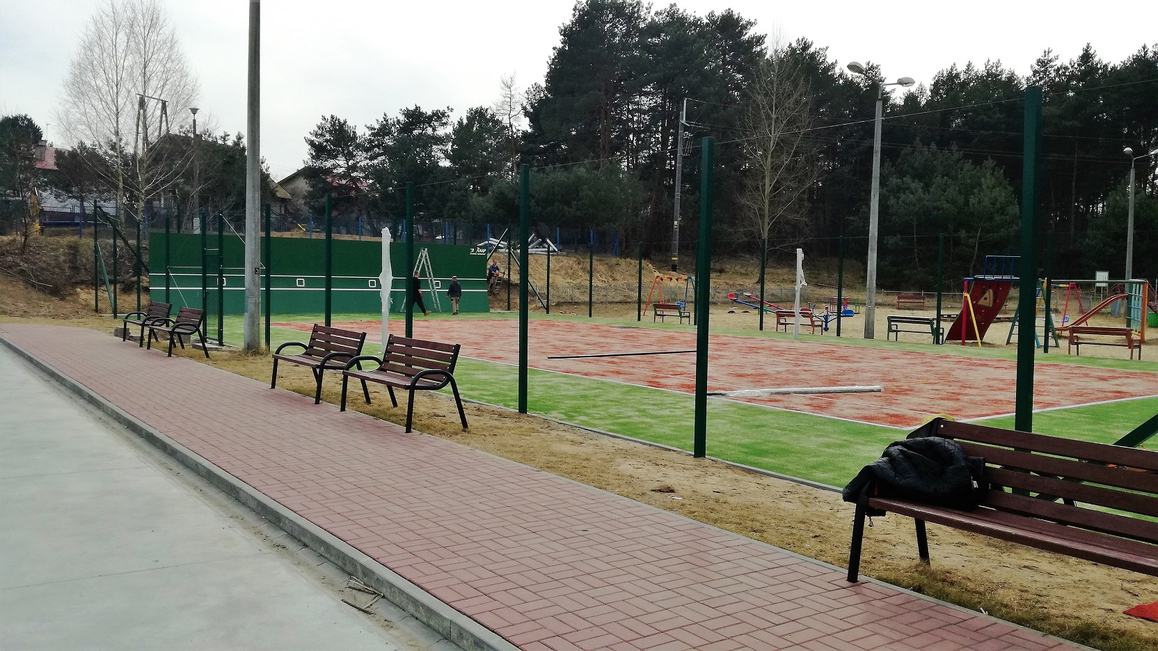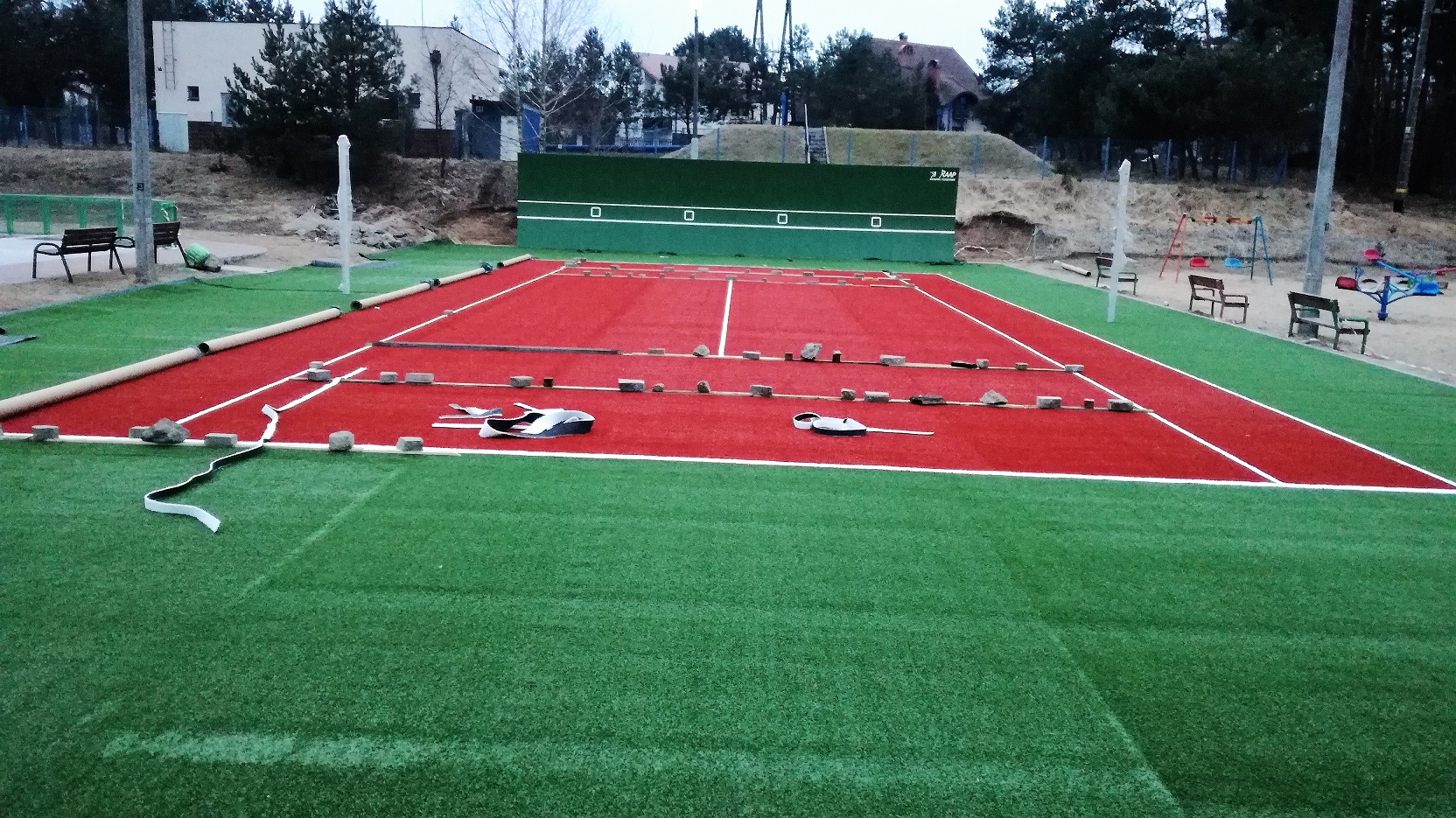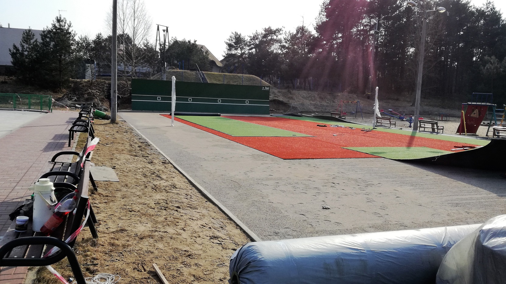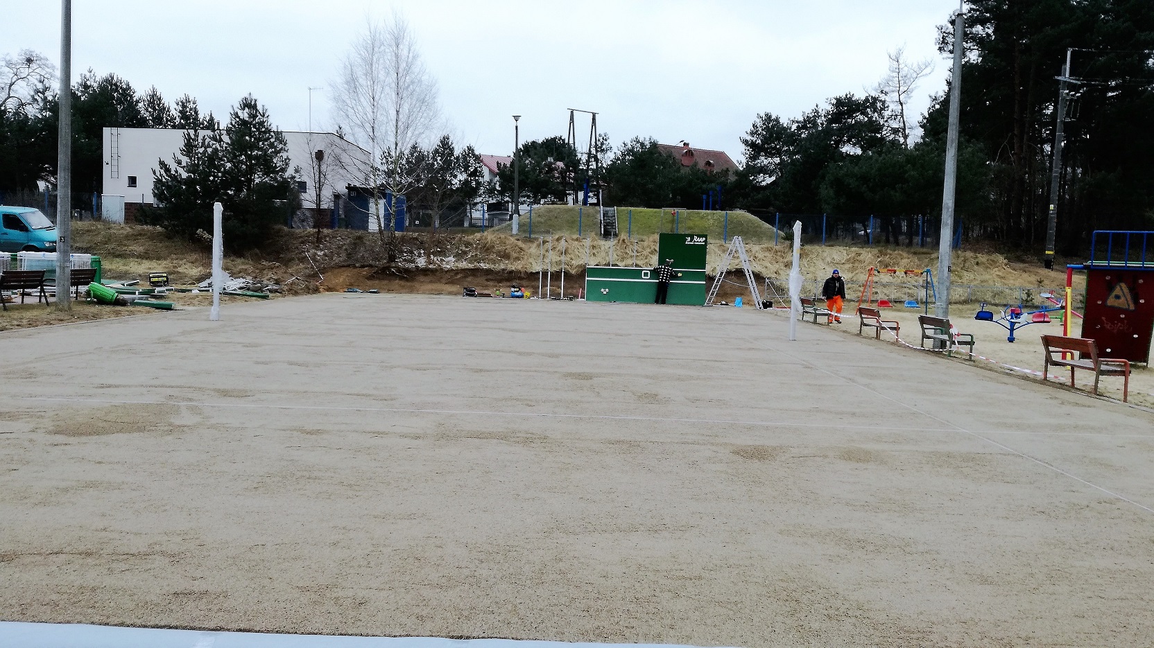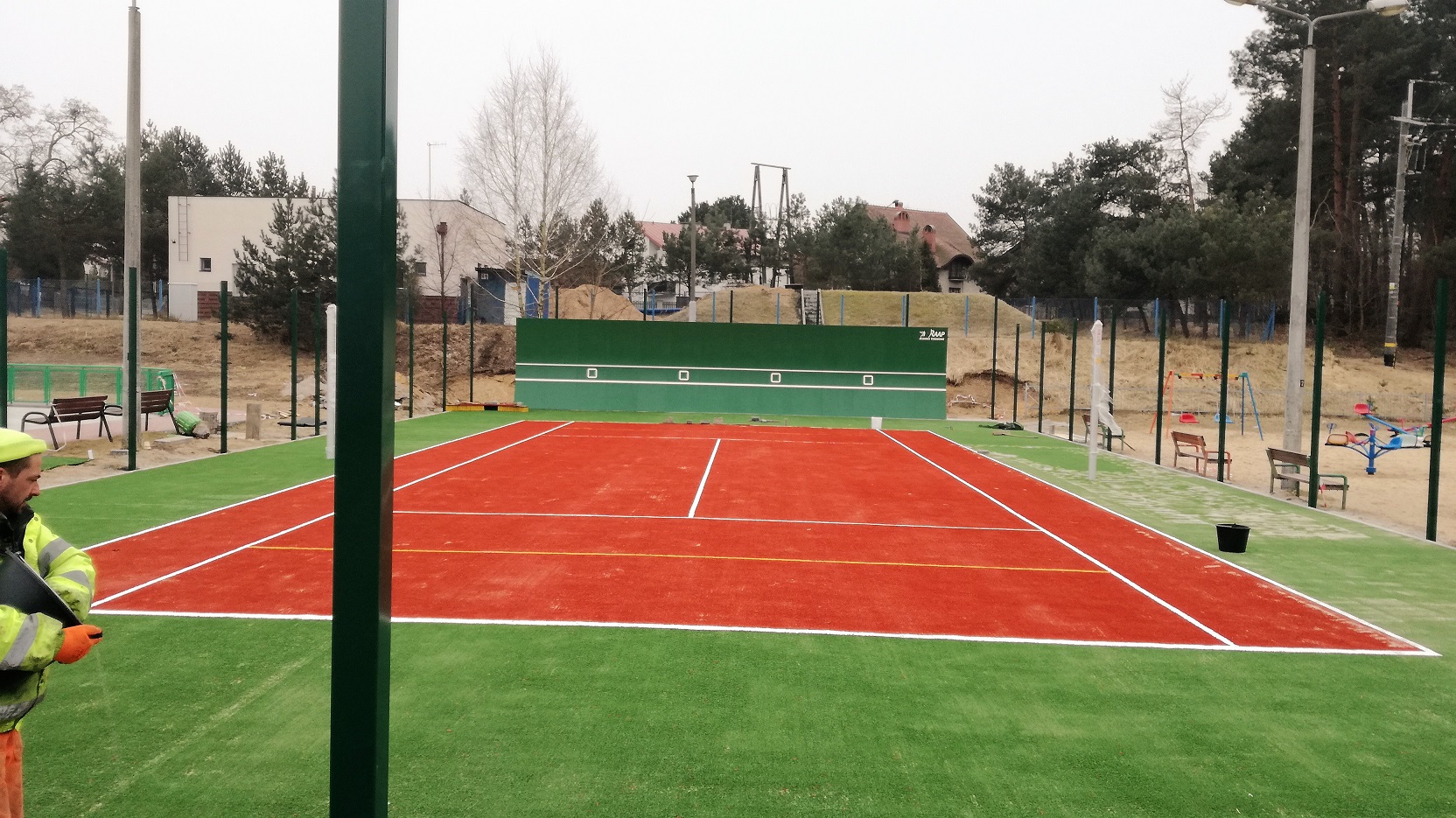Na placu rekreacyjno-sportowym u zbiegu ulic Zdrojowa/Włocławska dobiega końca modernizacja kortu tenisowego, który przekształcony został na boisko wielofunkcyjne do gry w siatkówkę i tenisa ziemnego. (zdjęcia: Piotr Mądrzejewski)