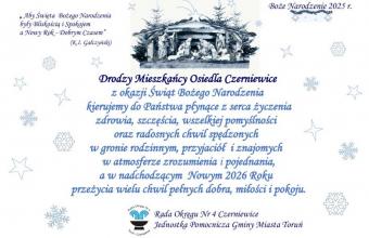 Drodzy Mieszkańcy Osiedla Czerniewice, z okazji Świąt Bożego Narodzenia kierujemy do Państwa płynące z serca życzenia